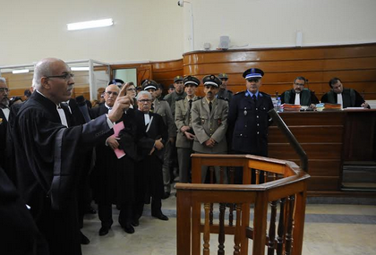وحضر جلسة اليوم، التي جرت في ظل إجراءات أمنية مشددة 10 محامين من هيئة باريس، ينوب بعضهم عن ذوي الضحايا، والبعض الآخر عن المعتقلين في الملف، ويوجد من بينهم أيضا محامي اسباني، فضلا عن مراقبين وملاحظين دوليين. وكانت جلسة المحاكمة انطلقت بموازاة مع وقفة احتجاجية لأفراد وعائلات الضحايا الذين طالبوا بإنصافهم وجبر ضررهم، وعدم تحويل القضية من ملف جنائي إلى سياسي.