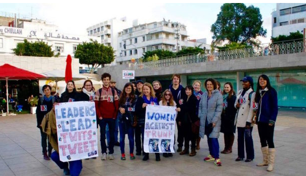 نظم عشرات المواطنين الأمريكيين زوال يوم السبت وقفة رمزية للاحتجاج على انتخاب دونالد ترامب، بساحة مولاي الحسن بالرباط. و لم تدم الوقفة الا دقائق معدودة لأخد صورة و نشرها عبر موقع تويتر على منوال العشرات من الوقفات في كل أنحاء العالم.