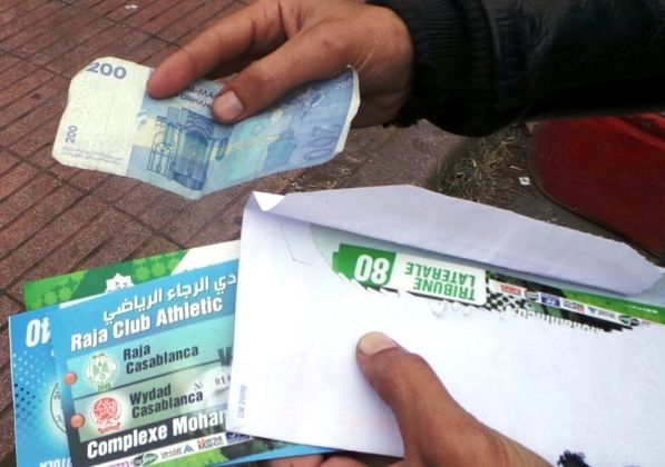 الهب تجار السوق السوداء اسعار تذاكر مباراة الديربي البيضاوي بعد ان نفذت جميع تذاكر مباراة الديربي التي ستجمع يوم الأحد المقبل بين الرجاء والوداد البيضاويين، برسم الجولة الخامسة والعشرين من البطولة الوطنية الاحترافية لكرة القدم.
