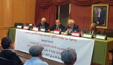 طالب رؤساء سابقون لجمعية هيئات المحامين بالمغرب باسقاط مقترح المادة 8 من قانون المالية المصوت عليها بمجلس النواب، معتبرين ذالك عصيان للاحكام القضائية وتحقيا لها ورفضا لتنفيذها ومساسا بهيبة القضاء وبحقوق المتقاضين .