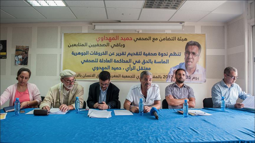 كما أخذت الجمعية علما بالطرد الذي تعرض له الصحفي حميد المهداوي من داخل جلسة المحاكمة، يوم 17 ماي، عقب تصريحه بما كان له ضحية داخل السجن من اعتداءات؛ واطلع، بالكثير من الأسف، على الموقف السلبي والنعوت المهينة التي فاه بها ممثل النيابة العامة في حق المعني بالأمر.