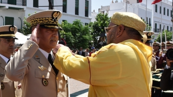 قام الملك محمد السادس، القائد الأعلى ورئيس أركان الحرب العامة للقوات المسلحة الملكية، مرفوقا بولي العهد الأمير مولاي الحسن، والأمير مولاي رشيد، بعد زوال اليوم الثلاثاء بساحة المشور بالقصر الملكي بتطوان، بمناسبة تخليد الذكرى التاسعة عشر لعيد العرش، بترقية عدد من الضباط السامين إلى رتبة جنرال وكولونيل ماجور، كما تفضل وأعطى موافقته السامية على جدول ترقيات أفراد القوات المسلحة الملكية إلى رتب أعلى برسم سنة 2018.