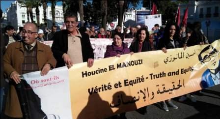 ورفع المحتجون شعارات تطالب الدولة بحماية الحقوق الأساسية للمغاربة وضرورة التفعيل الكامل والفوري لتوصيات هيئة الإنصاف والمصالحة. و طالبت هيئة متابعة توصيات المناظرة الوطنية حول الانتهاكات الجسيمة لحقوق الإنسان، المنظمة للمسيرة، الحكومة بتفعيل التوصيات المتبقية المتفق عليها سابقا؛ من ضمنها الكشف عن كافة الأشخاص مجهولي المصير والمختطفين.