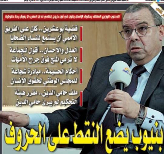 وأضاف بنيوب “أنا لا أقول إن لدينا الجنة والورود، وإنما أؤكد أننا لا نعيش ردة حقوقية والدليل على ذلك المسيرة الضخمة التي شهدتها شوارع الرباط تفاعلا مع أحكام قضائية”، مشيرا إلى أن المغرب لا يسكت الأصوات الحرة ولا يقمع حريات التعبير لنقول إنه يعيش تراجعا على مستوى الحقوق.