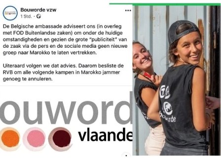 قررت جمعية بوروك البلجيكية إلغاء كل معسكراتها التطوعية بالمغرب، وذلك بعد استشارة السفارة البلجيكية بالرباط، التي نصحت بتوقيف المعسكرات ولو بشكل مؤقت، وذلك بعد الضجة الإعلامية التي أحدثتها تدوينات محرضة على فيسبوك وخصوصا تدوينة البرلماني عن حزب العدالة والتنمية علي العسري، الذي انتقد بشدة لباس المشاركات في العمل التطوعي بالجنوب.