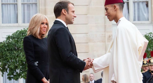 وحسب وكالة المغرب العربي للأنباء، فقد استقبل ولي العهد الأمير مولاي الحسن، الذي كان مرفوقا بوزير الشؤون الخارجية والتعاون الدولي ناصر بوريطة، في ساحة قصر الإيليزي من طرف الرئيس الفرنسي، إيمانويل ماكرون، وعقيلته بريجيت ماركون.