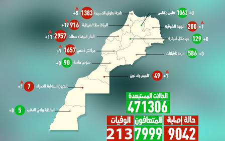 عادت جهة الرباط سلا القنيطرة خلال آخر 16 ساعة، لتحتل صدارة جهات المملكة من حيث أكبر عدد للإصابات اليومية، حيث سجلت مصالح وزارة الصحة 19 مصابا جديدا بالجهة رفعت حصتها إلى 916 .