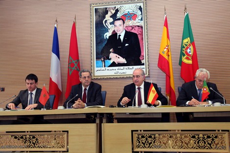 تبنى وزراء داخلية كل من المغرب وإسبانيا وفرنسا والبرتغال. اليوم الجمعة بالرباط. بيانا مشتركا أطلق عليه اسم "إعلان الرباط " ينص على تنسيق وتعزيز الجهود وايجاد حلول ناجعة للمخاطر الأمنية التي تهدد استقرار المنطقة.