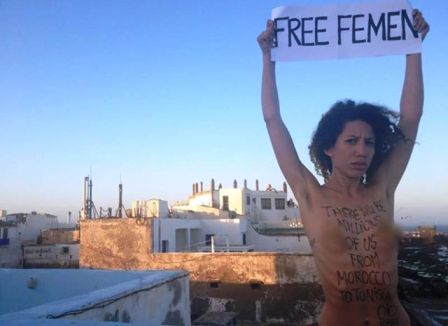 بعد امينة التونسية سيكون للمغاربة "عارية صدر"، تنتمي إلى حركة ناشطات "فيمن" الدولية، اللائي اشتهرن بالاحتجاج على اوضاع المرأة عن طريق العري.