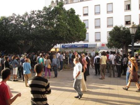 تحولت ساحة مقهى باليما" لساحة للكر و الفر بعد أن قام شخص في حالة هستيرية بفض تجمع لعدد من الشباب من بينهم ابتسام لشكر، كانوا يعتزمون التظاهر ضد متابعة قاصري الناظور بسبب قبلة.