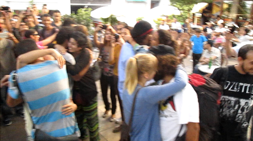 و انتقل المحتجون على اعتقال قاصري الناظور من ساحة "باليما" لساحة مولاي الحسن قرب سوق الورود ، تحت وابل السب و الشتم و التهديدات التي قامت بها نفس المجموعة . و استمر المحتجون على اعتقال القاصرين الذين كانوا ينوون تنظيم وقفة لتبادل القبل كشكل من أشكال الاحتجاج، متجمعين لساعة في ساحة مولاي الحسن.