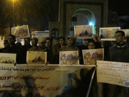 نظم نشطاء و شباب من الفايسبوك وقفة احتجاجية أمام وزارة العدل و الحريات بالرباط مساء الجمعة 24 يناير تضامنا مع "أبا إيجو" ضحايا نصاب تزنيت.