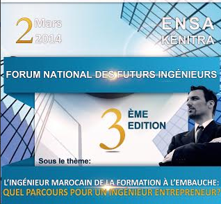 أي مسار للمهندس المقاول ؟ و ذلك يوم الأحد 2 مارس 2623 بالمدرسة الوطنية للعلوم التطبيقية بالقنيطرة .