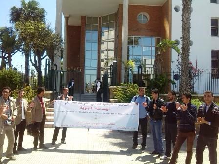 و أقدمت المجموعة اليوم في خطوة نضالية من أجل إسماع صوتها ومطالبها للمسؤولين، على تنظيم وقفة احتجاجية أمام مبنى وزارة الطاقة و المعادن بالرباط رفعت من خلاله المجموعة شعارات منددة ضد سياسة الصمت و اللامبالاة الذي تطال مطلبنا العادل و المشروع في الحق في الشغل و طالبنا بتوفير المباريات المنعدمة وفقا لمبدأ تكافئ الفرص.