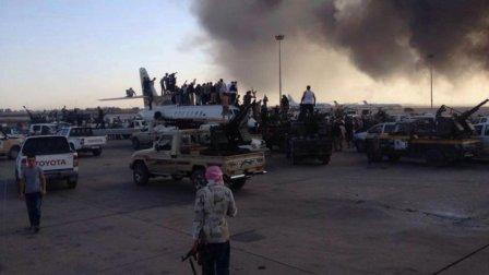أعلن أحد قوات "عملية فجر ليبيا" وهي ميليشيات مدينة مصراتة والكتائب الإسلامية المتحالفة معها سيطرتها على مطار طرابلس الدولي بعد نحو شهر من المعارك العنيفة مع ميليشيات الزنتان المدعومة من اللواء المتقاعد من الجيش خليفة حفتر.