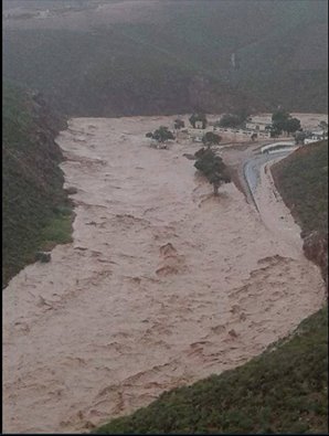 علم من مدينة سيدي إفني صبيحة الاحد، أن السيول حاصرت المنطقة بكاملها و تسببت في انهيار قنطرة كريزيم التي جرفت السيول جزءا منها .