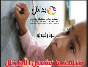 كما اعلنت "منظمة بدائل للطفولة والشباب" مواصلة قيادتها للحملة الوطنية لمناهضة تشغيل الأطفال من أجل بلوغ هدف إنهاء آفة تشغيل الأطفال؛ والمطالبة بإخراج قانون العمال والعاملات المنزليات – و التي عرفت الانطلاقة مند 27 نونبر 2014 بتنظيم ندوات ولقاءات ترافعية لدى صناع وأصحاب القرار (جمعيات تربوية وفاعلون مدنيون، شخصيات وفعاليات مختلفة، برلمانيون، ومسؤولون حكوميون...)، و شهدت شن حملات توعية موجهة لعائلات الأطفال في المدن والقرى وللمشغلين ولعموم المواطنين لشرح أخطار التشغيل المبكر على أطفالهم، وستتوج هذه الحملة بتنظيم مسيرة وطنية يوم الأحد 14 يونيه 2015 على الساعة العاشرة صباحا انطلاقا من ساحة باب الحد بالرباط بمناسبة اليوم العالمي لمناهضة تشغيل الأطفال (12 يونيو) .