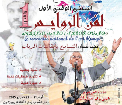 تنظم مؤسسة تافسوت للحوار والتسامح ببويزكارن، الملتقى الوطني الأول لفن الروايس، دورة المرحوم عموري مبارك، وذلك طيلة يومي السبت والأحد 21 و 22 فبراير من الشهر الجاري ببويزكارن.