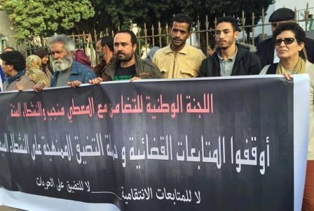 وقبل انطلاق المحاكمة زوال الخميس، نظمت اللجنة الوطنية للتضامن مع منجب وقفة تضامنية أمام باب المحكمة.