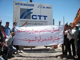 احتشد المئات من جميع انحاء ورزازات صباح الخميس أمام المحكمة الابتدائيةللاعتصام أمامها تنديد بالاعتقال الذي تعرص له أربعة عمال مناجم بوازار الذين لا يزالون قيد الاعتقال.