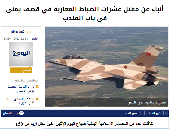 وتداولت مجموعة من المنابر الإعلامية اليمنية التابعة لجماعة الحوثيين الاثنين، خبرا مفاده مقتل 150 جندي خلال معاركهم ضد الثوار الحوثيين وضمنهم حوالي 12 جندي مغربي.