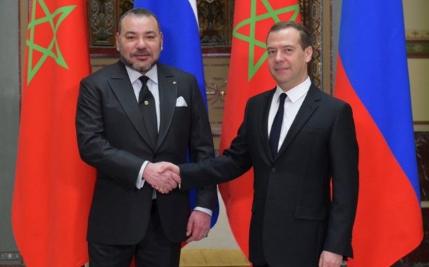 وكالة الانباء الروسية "سبوتنيك" أبرزت من جانبها أن "قصر الكرملين في العاصمة الروسية موسكو شهد محادثات بين الرئيس الروسي والعاهل المغربي الذي يقوم بزيارة الى روسيا الاتحادية".