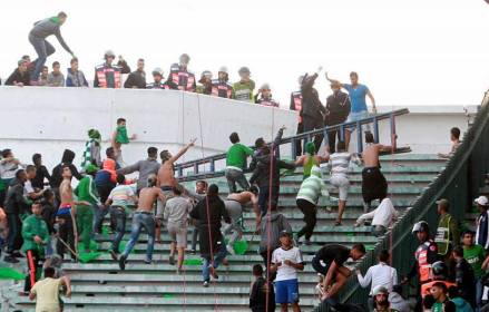 وكان شخصان لقيا مصرعهما، وأصيب آخرون بجروح في أعمال شغب وعنف شهدتها مدرجات المركب الرياضي محمد الخامس بالعاصمة الاقتصادية، بعد نهاية المباراة التي جمعت فريقي الرجاء البيضاوي وشباب الريف الحسيمي برسم منافسات الدورة 21 من البطولة الوطنية الاحترافية لأندية القسم الأول لكرة القدم.