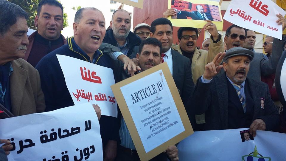 وبالمناسبة جدد المكتب إدانته للمتابعة القضائية في حق نقيب الصحفيين المغاربة، ومدير جريدة العلم عبد الله البقالي، على خلفية نشره مقالا تضمن فضحا لتجاوزات وفساد بعض العمال والولاة ، إبان الانتخابات الجماعية الأخيرة، و المتابعة الجديدة للصحفي حميد المهداوي، مدير موقع بديل و الاعتداء الشنيع الذي تعرض له سمير زرادي، الصحفي بجريدة العلم، على يد قوات الأمن صبيحة يوم الأربعاء، 27 أبريل 2016، خلال قيامه بواجبه المهني في التغطية الصحفية . و جدد تضامنه مع الصحفي الشاب عبدالاله بوسحابة، مراسل موقع أخبارنا بمدينة الصخيرات، والذي تتم متابعته على خلفية شكاية مباشرة تقدم بها ضده مدير فندق "لومفتريت" بالصخيرات، على خلفية مقال نشره، يتضمن تصريحات لأعضاء المكتب النقابي، يستنكرون من خلالها الأوضاع الاجتماعية لشغيلة الفندق، في ظل لامبالاة المدير.