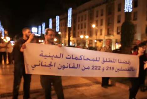 وبحسب منظمي الوقفة فإن "هذه التظاهرة جاءت للتنديد بالفصل 222 الذي يضرب أسمى حقوق الإنسان وهي حق التعبير والحرية ومنها حرية المعتقد لأن هذا القانون يفتح المجال لممارسات إرهابية في الشارع وتعطي الحق لأي كان من أجل محاكمة الآخرين في الشارع". و ادان المحتجون خنق الحريات الفردية من خلال قضاء الشارع بعدد من المدن و محملين المسؤولية للدولة المغربية .