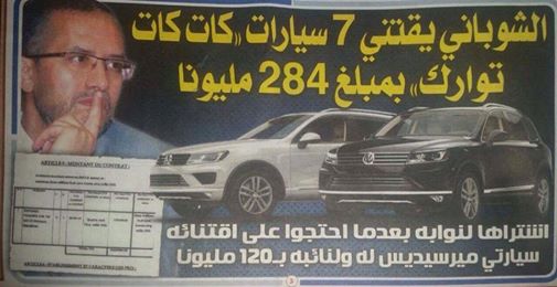 هيمنت السيارات الفاخرة التي اقتناها الحبيب الشوباني، عضو الأمانة العامة لحزب العدالة والتنمية ورئيس جهة درعة تافيلالت، على اجتماع الأمانة العامة لحزب العدالة والتنمية، الذي انعقد اليوم السبت، وعلم أن عبد الإله بنكيران، الأمين العام للحزب، انتفض في وجه الشوباني لأن هذه العملية قد تؤثر سلبا على صورة الحزب في الانتخابات المقبلة.