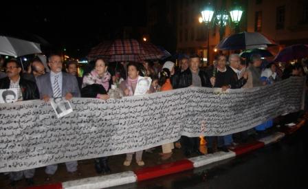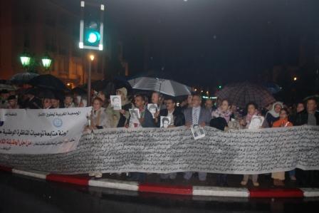 تحدى العشرات من الحقوقيين المنظوين تحت لواء "هيئة متابعة توصيات المناظرة الوطنية حول الإنتهاكات الجسيمة لحقوق الإنسان" ، الأمطار الغزيرة بالعاصمة لتخليد اليوم الوطني للمختطف، و الذي يزامن ذكرى اختطاف المهدي بنبركة.
